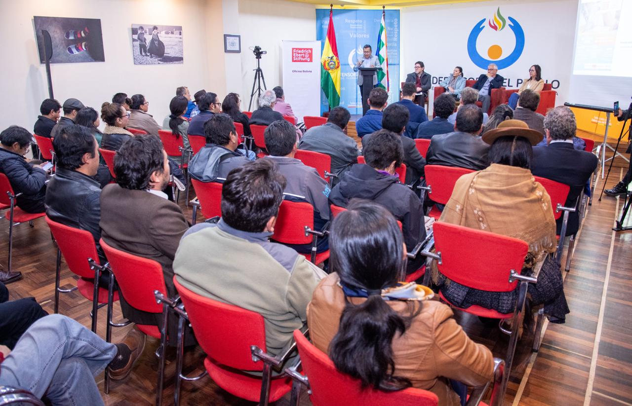 También señaló que la interpelación al sistema judicial boliviano y la reforma de la justicia son aspectos que marcan la agenda electoral. “Es importante mencionar que la Defensoría del Pueblo ya en diferentes ocasiones ha manifestado su preocupación por la persistente crisis del sistema de justicia, esto se materializa en cantidades significativas de procesos pendientes, rezagos administrativos y dificultades para garantizar el acceso efectivo a la justicia para las víctimas”.