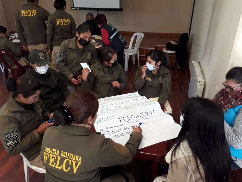 Potosí, 14 de septiembre 2022.- La Defensoría del Pueblo y la Fuerza Especial de Lucha Contra la Violencia (FELCV) Potosi, culminan mesas de trabajo en las que se abordaron temáticas de fortalecimiento y capacidades para estandarizar los procesos de prevención, auxilio y recepción de las denuncias de mujeres en situación de violencia.
